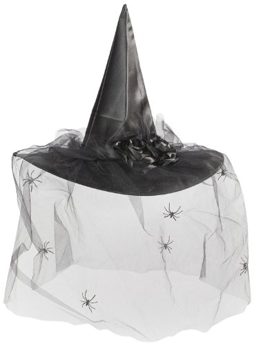 Brauns Heitmann 6873 - Grande cappello da strega con velo con ragni dimensioni circa 46 cm, taglia unica per adulti, colore: Nero